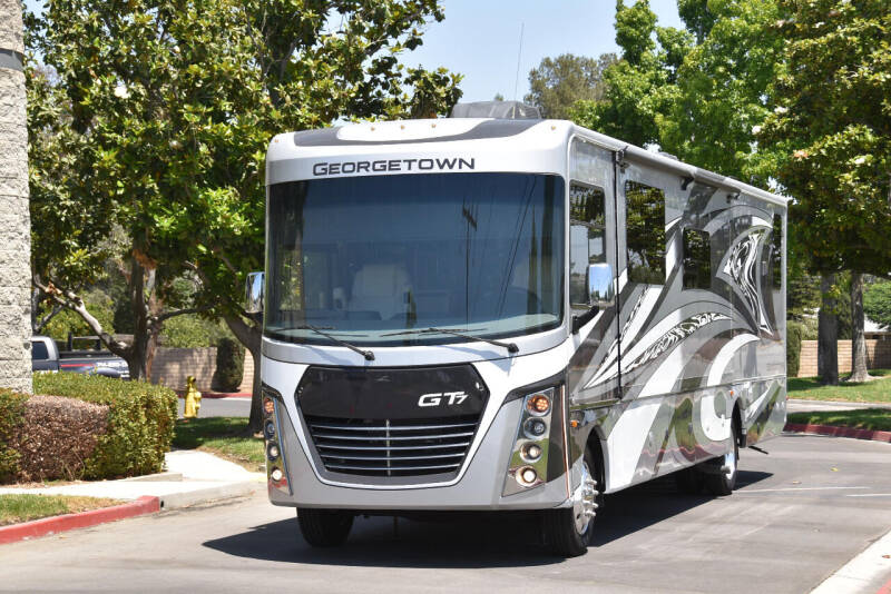 2021 model year the Forest River Georgetown line of motorhome has been updated with new class designations from GT-3 the GT7 at the top. This is a GT7 and gets a more complex Full Body Paint scheme with 100% professionally painted on graphics and premium long-life clear coat. The lower line RVs only get bare fiberglass and sticker graphics that can start fading after a few years but this may stay gorgeous for 20+ years even if you don’t wax it but if you take care of it then it may last much longer. There are may High-end features including a power adjustable King Bed base. Premium cabinetry, Washer Dryer Combo, Dual Sinks in Master restroom. Separate Guest Restrooms. State of the Art Technology. The front windshield is in excellent condition. The paint is in great shape and condition. No dings are visible on this vehicle. The interior was well maintained and is extra clean. The engine is functioning properly and has no issues. The transmission shifts very smoothly. The brakes are in great condition. The battery is in excellent condition. The car was previously owned by a non smoker. This vehicle had one previous owner.